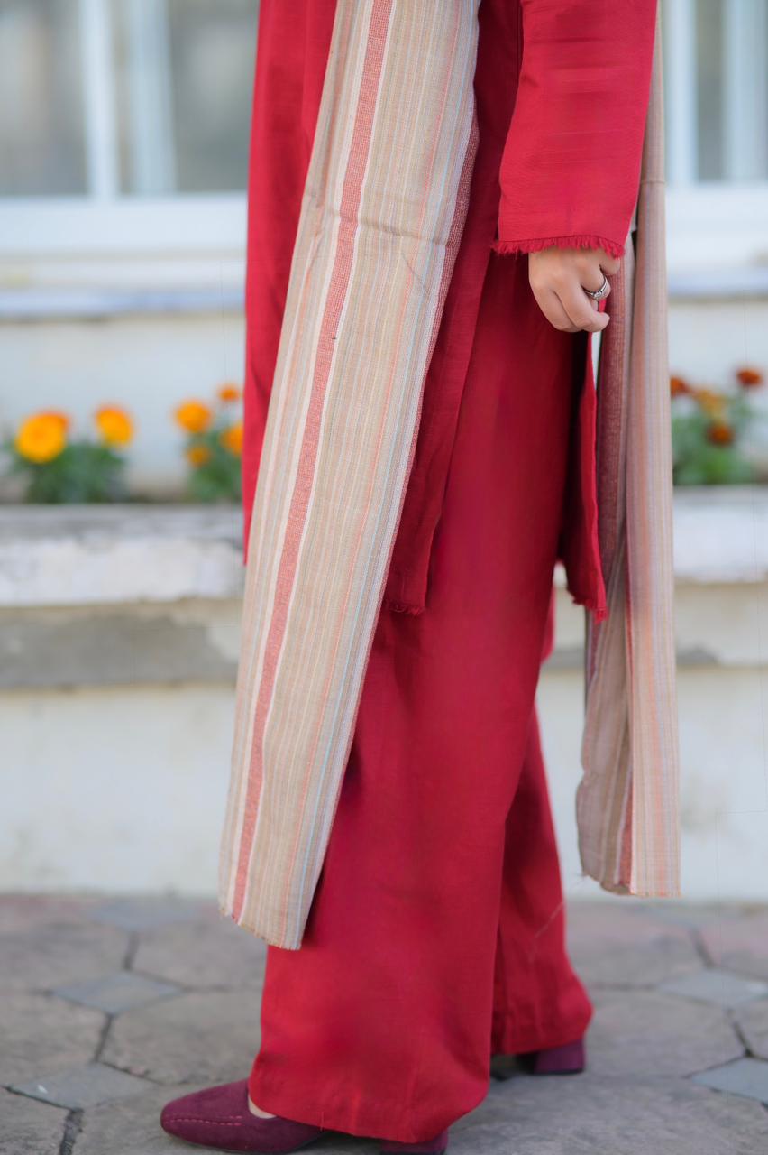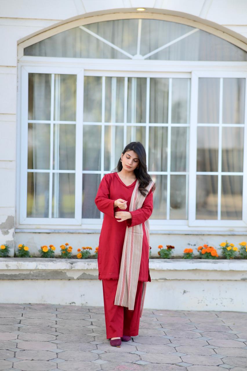 Experience the comfort of high-quality Khaddar paired with an intricately designed shawl.